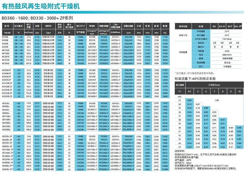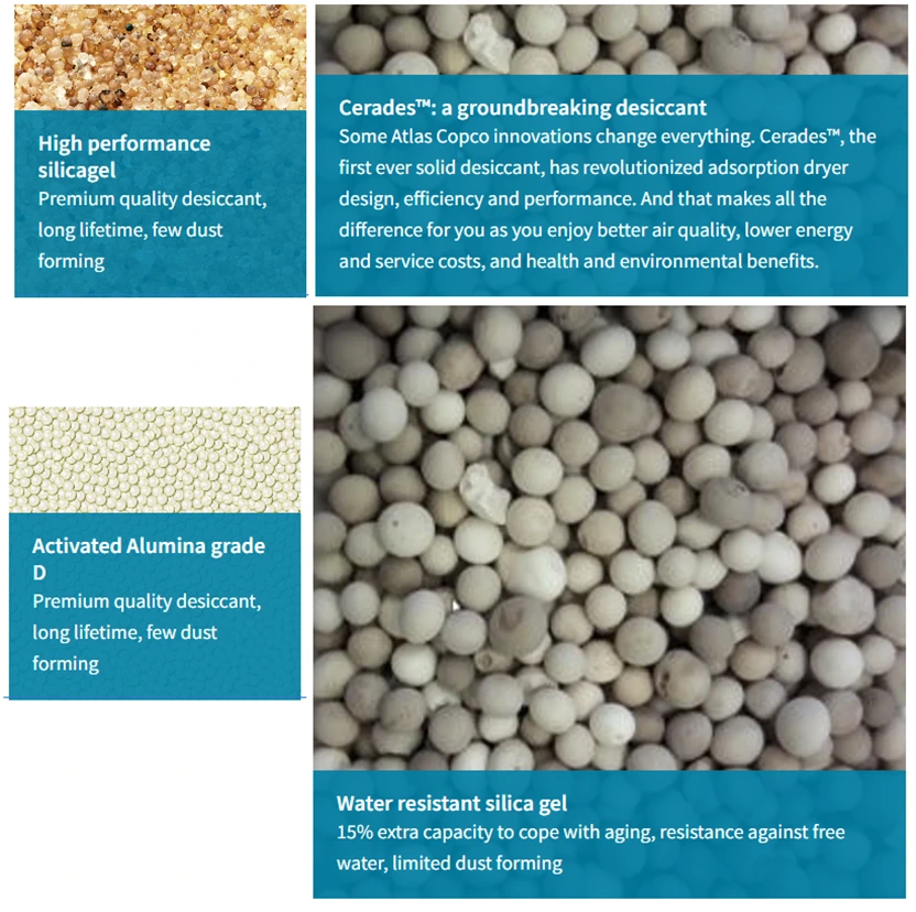 Залежно від точки роси під тиском осушувачі можуть бути виготовлені з оксиду алюмінію, силікагелю або молекулярних сит. Мінімальна точка роси під тиском може досягати -70 ℃.