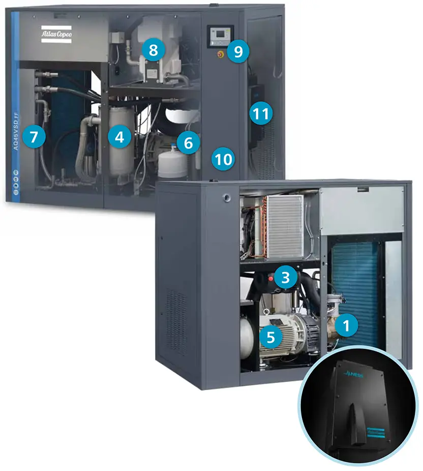 Технологія Atlas Copco AQ VSD відстежує зміни споживання газу клієнтами та регулює швидкість компресора в режимі реального часу, досягаючи середньої економії енергії до 35 відсотків і загальної економії витрат протягом життєвого циклу приблизно на 22 відсотки.