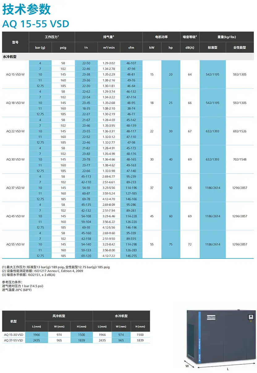 На енергоспоживання компресора припадає понад 70% вартості всього життєвого циклу, а виробництво стисненого повітря споживає понад 40% від загального рахунку за електроенергію заводу. Щоб зменшити споживання енергії, Atlas Copco розробила безмасляний повітряний компресор з водяним змащенням VSD. Технологія VSD не тільки економить багато енергії, але й захищає навколишнє середовище для майбутніх поколінь. Завдяки постійним інвестиціям у цю технологію Atlas Copco пропонує на ринку широкий асортимент повітряних компресорів з приводом із змінною швидкістю (VSD).