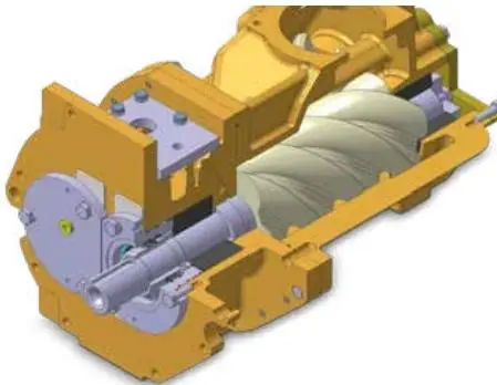 Ядро компресора серії AQ — унікальний подвійний гвинтовий ротор з уприскуванням води, ефективна робота, наближена до ізотермічного стиснення. Надміцний полімерно-композитний ротор, оптимізований профіль ротора та підшипники з водяним змащенням гарантують, що ротор не забруднюється маслом і виробляє чисте стиснене повітря без масла.